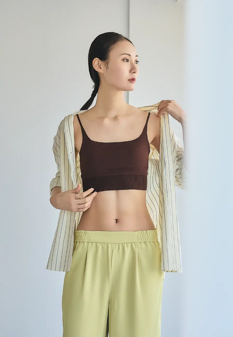 締め付け感を抑えた設計で、素肌に直接着てもストレスを感じにくく、インナーとしても一枚着としても美しく整います。